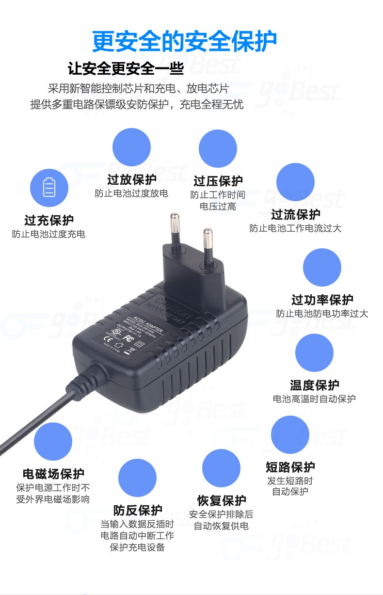 • 采用前沿IC控制方案和先進(jìn)的制造工藝,高精度,低噪音;過壓,過流,過充,短路等多重保護(hù)。
