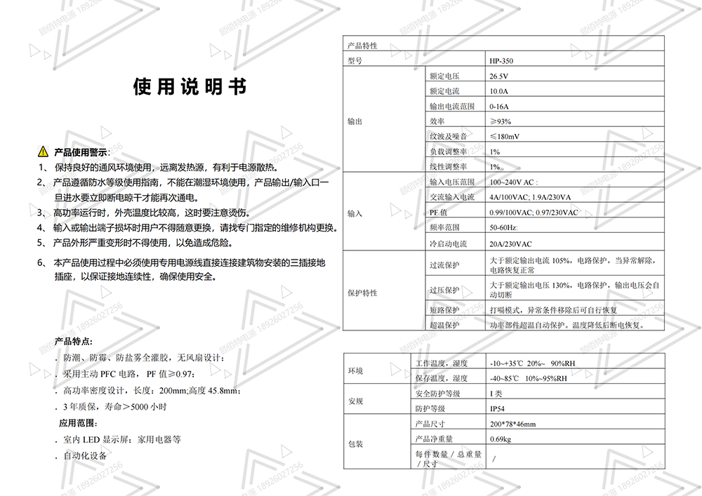 • 采用前沿IC控制方案和先進的制造工藝,高精度,低噪音;過壓,過流,過充,短路等多重保護。